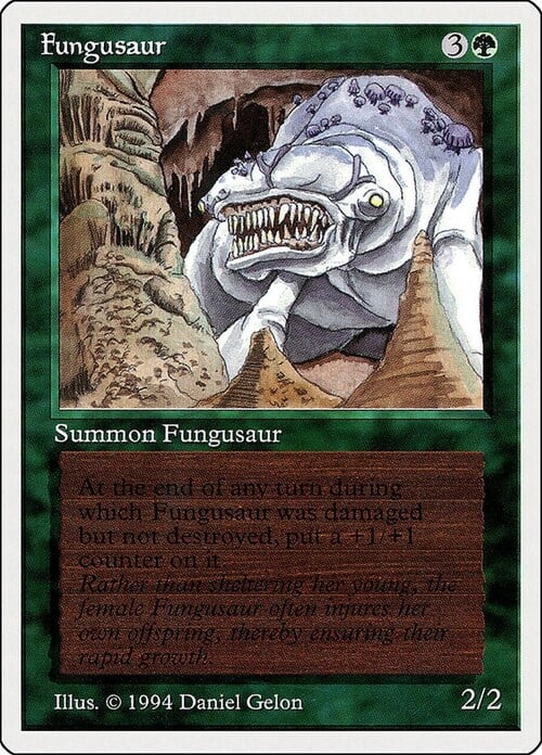 Rather than sheltering her young, the female Fungusaur often injures her own offspring, thereby ensuring their rapid growth.