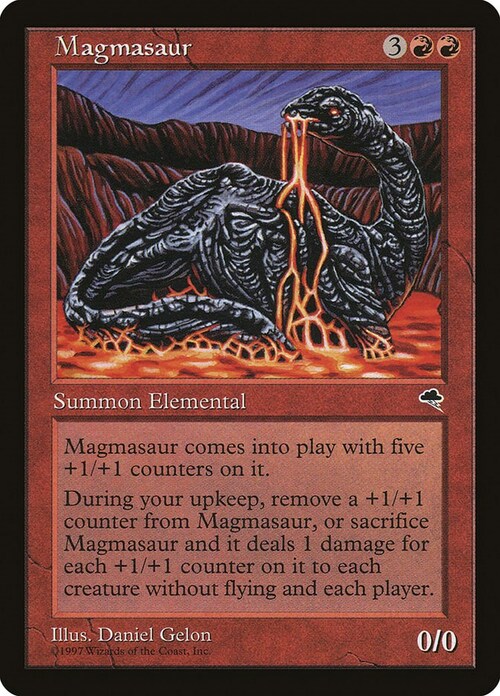 At the beginning of your upkeep, you may remove a +1/+1 counter from this creature. If you don't, sacrifice this creature and it deals damage equal to the number of +1/+1 counters on it to each creature without flying and each player.
