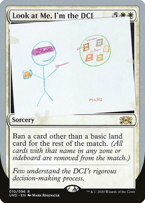 Ban a card other than a basic land card for the rest of the match. (All cards with that name in any zone or sideboard are removed from the match.)