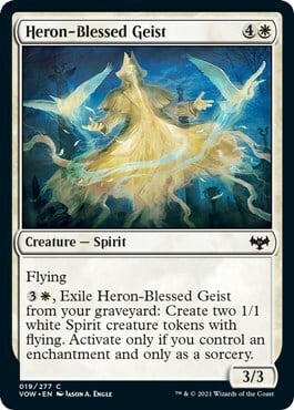{3}{W}, Exile this card from your graveyard: Create two 1/1 white Spirit creature tokens with flying. Activate only if you control an enchantment and only as a sorcery.