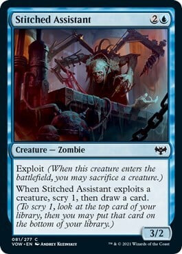 When this creature exploits a creature, scry 1, then draw a card. (To scry 1, look at the top card of your library, then you may put that card on the bottom.)