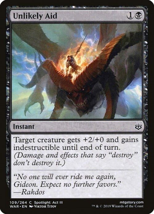 Target creature gets +2/+0 and gains indestructible until end of turn. (Damage and effects that say "destroy" don't destroy it.)
