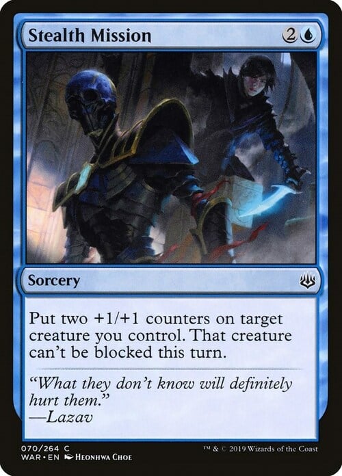 Put two +1/+1 counters on target creature you control. That creature can't be blocked this turn.