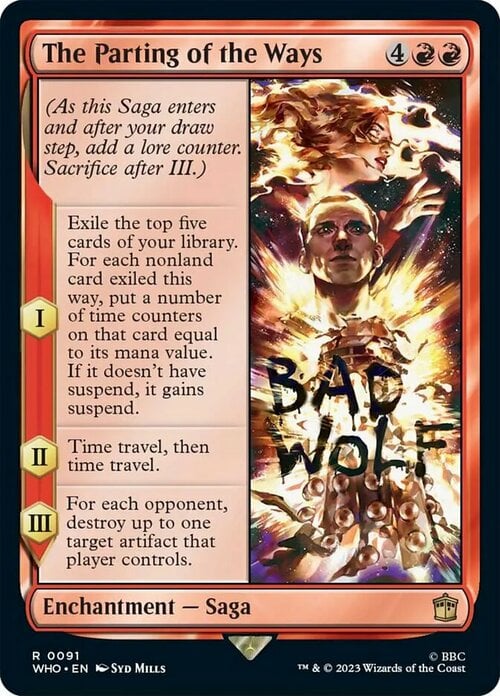 I — Exile the top five cards of your library. For each nonland card exiled this way, put a number of time counters on that card equal to its mana value. If it doesn't have suspend, it gains suspend.