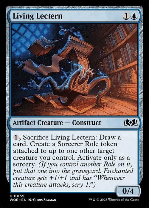 {1}, Sacrifice this creature: Draw a card. Create a Sorcerer Role token attached to up to one other target creature you control. Activate only as a sorcery. (If you control another Role on it, put that one into the graveyard. Enchanted creature gets +1/+1 and has "Whenever this creature attacks, scry 1.")