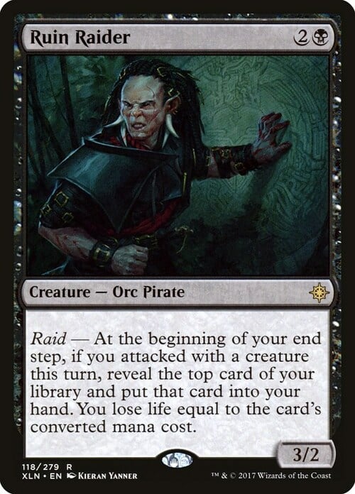 Raid — At the beginning of your end step, if you attacked this turn, reveal the top card of your library and put that card into your hand. You lose life equal to the card's mana value.