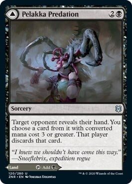 Target opponent reveals their hand. You choose a card from it with mana value 3 or greater. That player discards that card.