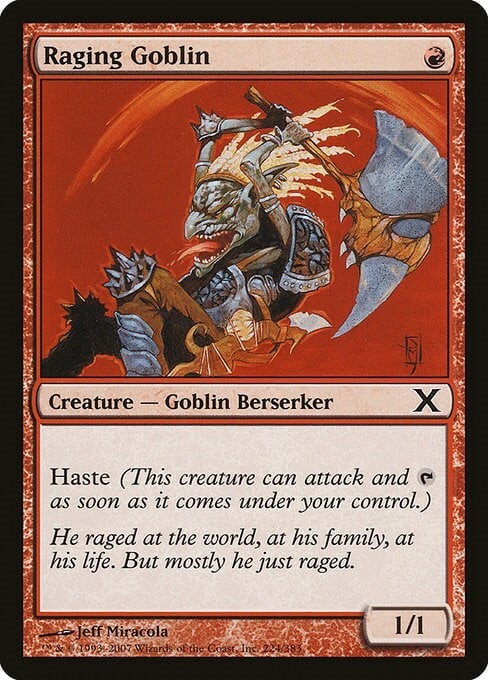 Haste (This creature can attack and {T} as soon as it comes under your control.)