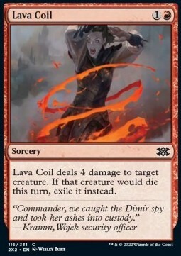 Lava Coil deals 4 damage to target creature. If that creature would die this turn, exile it instead.