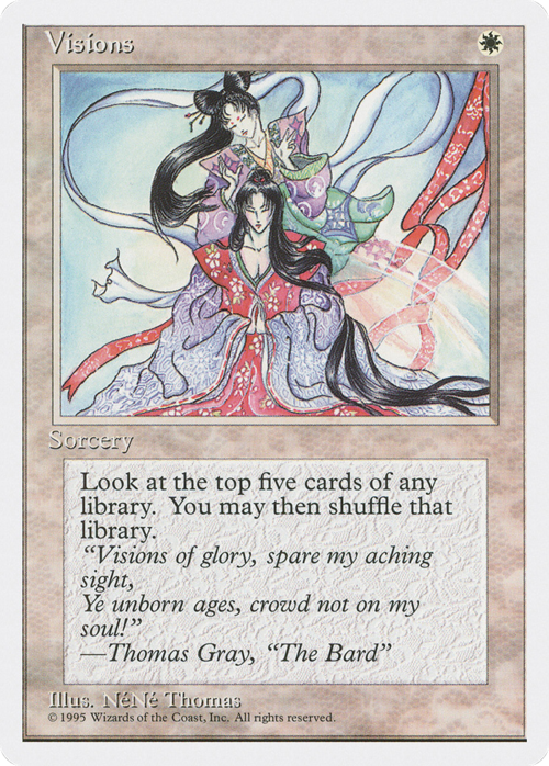 Look at the top five cards of target player's library. You may then have that player shuffle that library.