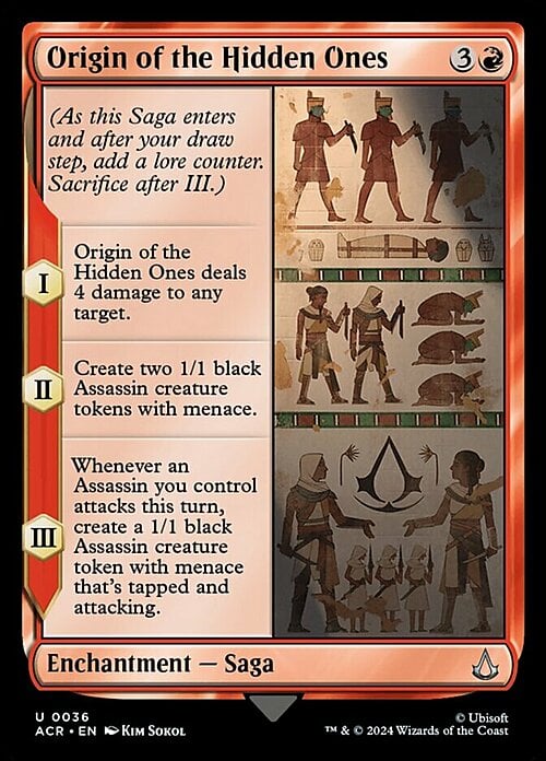 III — Whenever an Assassin you control attacks this turn, create a 1/1 black Assassin creature token with menace that's tapped and attacking.