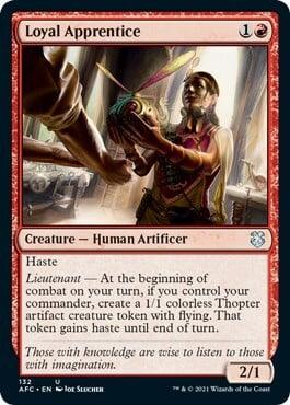 Lieutenant — At the beginning of combat on your turn, if you control your commander, create a 1/1 colorless Thopter artifact creature token with flying. That token gains haste until end of turn.
