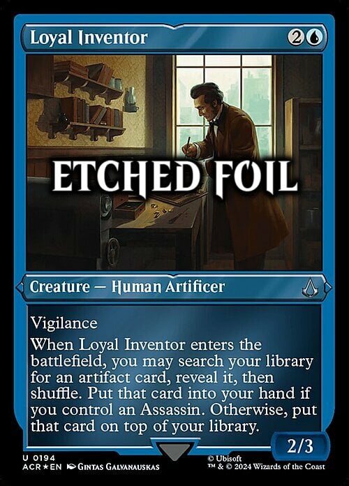 When this creature enters, you may search your library for an artifact card, reveal it, then shuffle. Put that card into your hand if you control an Assassin. Otherwise, put that card on top of your library.