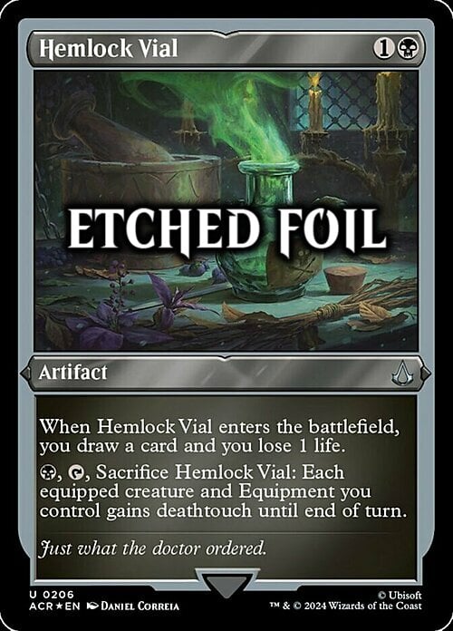 {B}, {T}, Sacrifice this artifact: Each equipped creature and Equipment you control gains deathtouch until end of turn.
