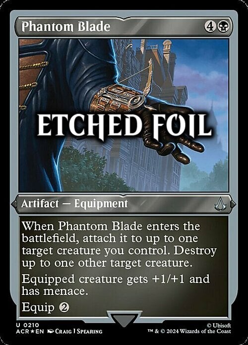 Equipped creature gets +1/+1 and has menace. (It can't be blocked except by two or more creatures.)