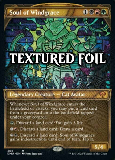 Whenever Soul of Windgrace enters or attacks, you may put a land card from a graveyard onto the battlefield tapped under your control.