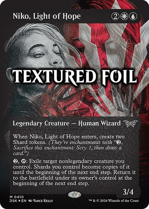When Niko enters, create two Shard tokens. (They're enchantments with "{2}, Sacrifice this token: Scry 1, then draw a card.")
