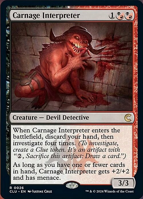 When this creature enters, discard your hand, then investigate four times. (To investigate, create a Clue token. It's an artifact with "{2}, Sacrifice this token: Draw a card.")
