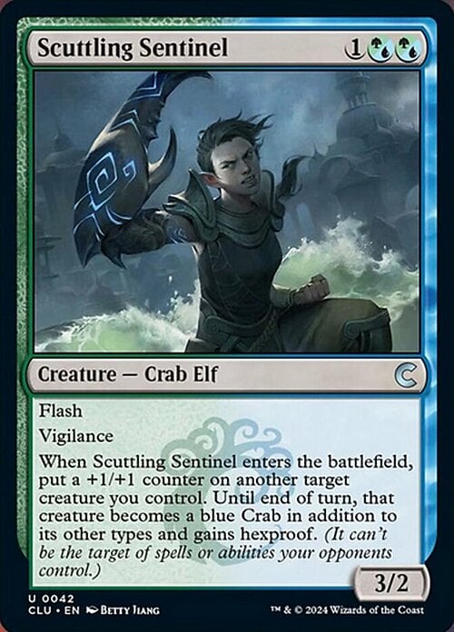 When this creature enters, put a +1/+1 counter on another target creature you control. Until end of turn, that creature becomes a blue Crab in addition to its other types and gains hexproof. (It can't be the target of spells or abilities your opponents control.)