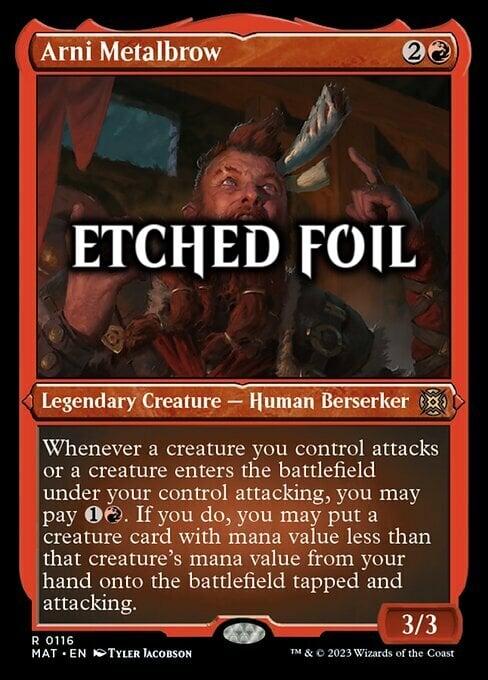 Whenever a creature you control attacks or a creature you control enters attacking, you may pay {1}{R}. If you do, you may put a creature card with mana value less than that creature's mana value from your hand onto the battlefield tapped and attacking.