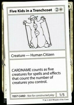 Five Kids in a Trenchcoat counts as five creatures for spells and effects that count the number of creatures you control.