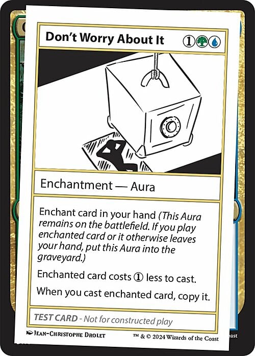 Enchant card in your hand (This Aura remains on the battlefield. If you play enchanted card or it otherwise leaves your hand, put this Aura into the graveyard.)