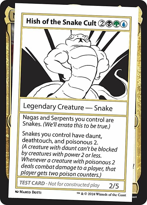 Snakes you control have daunt, deathtouch, and poisonous 2. (A creature with daunt can't be blocked by creatures with power 2 or less. Whenever a creature with poisonous 2 deals combat damage to a player, that player gets two poison counters.)