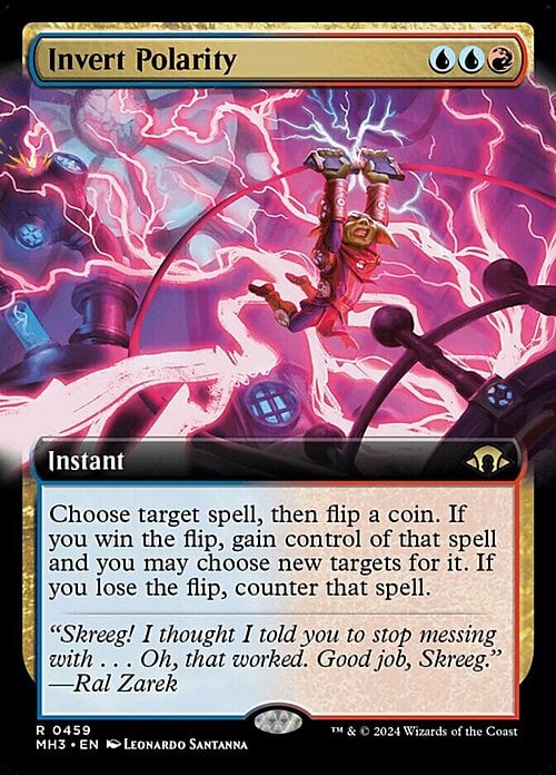 Choose target spell, then flip a coin. If you win the flip, gain control of that spell and you may choose new targets for it. If you lose the flip, counter that spell.