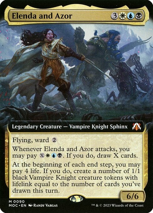 Whenever Elenda and Azor attacks, you may pay {X}{W}{U}{B}. If you do, draw X cards.