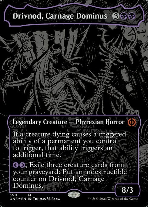 {B/P}{B/P}, Exile three creature cards from your graveyard: Put an indestructible counter on Drivnod. ({B/P} can be paid with either {B} or 2 life.)