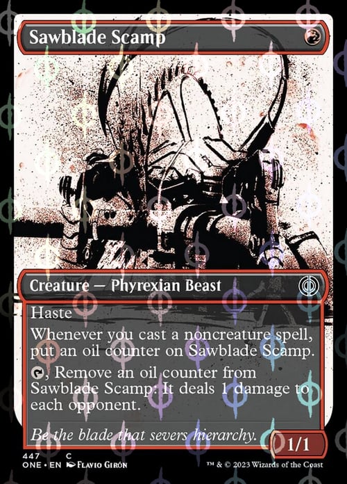 Whenever you cast a noncreature spell, put an oil counter on this creature.