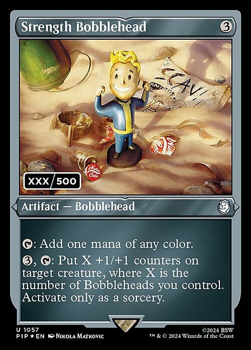 {3}, {T}: Put X +1/+1 counters on target creature, where X is the number of Bobbleheads you control. Activate only as a sorcery.