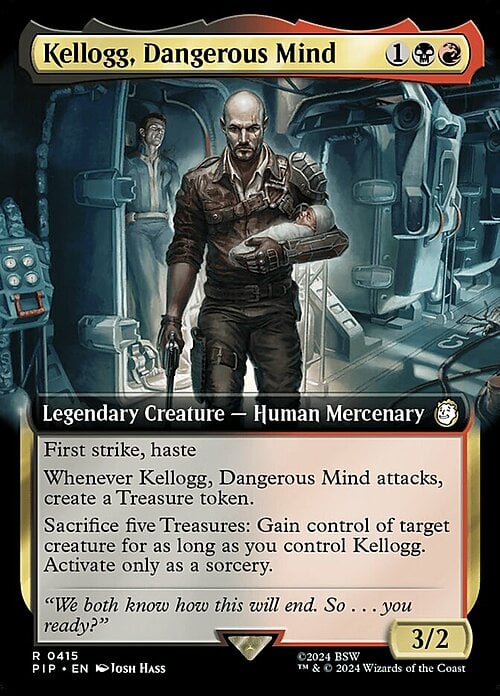 Sacrifice five Treasures: Gain control of target creature for as long as you control Kellogg. Activate only as a sorcery.