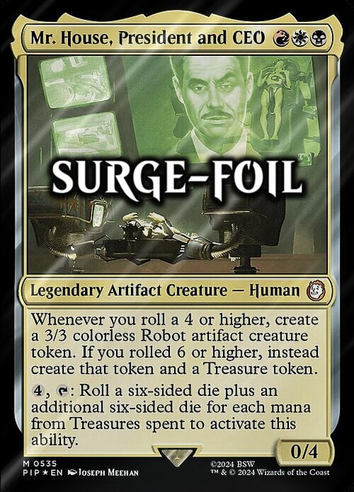 Whenever you roll a 4 or higher, create a 3/3 colorless Robot artifact creature token. If you rolled 6 or higher, instead create that token and a Treasure token.