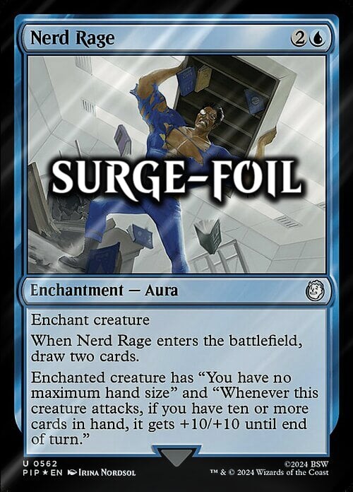Enchanted creature has "You have no maximum hand size" and "Whenever this creature attacks, if you have ten or more cards in hand, it gets +10/+10 until end of turn."
