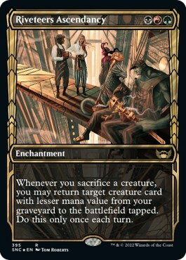 Whenever you sacrifice a creature, you may return target creature card with lesser mana value from your graveyard to the battlefield tapped. Do this only once each turn.