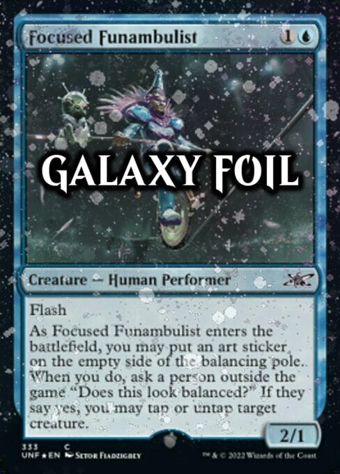 As this creature enters, you may put an art sticker on the empty side of the balancing pole. When you do, ask a person outside the game "Does this look balanced?" If they say yes, you may tap or untap target creature.