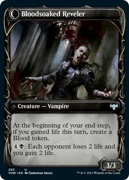 At the beginning of your end step, if you gained life this turn, create a Blood token. (It's an artifact with "{1}, {T}, Discard a card, Sacrifice this token: Draw a card.")