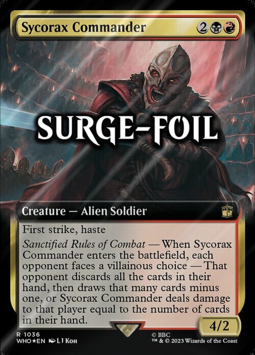 Sanctified Rules of Combat — When this creature enters, each opponent faces a villainous choice — That opponent discards all the cards in their hand, then draws that many cards minus one, or this creature deals damage to that player equal to the number of cards in their hand.