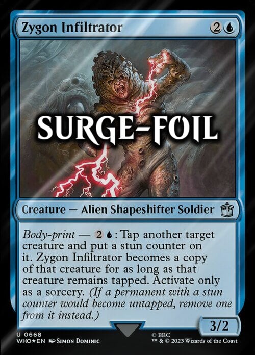 Body-print — {2}{U}: Tap another target creature and put a stun counter on it. This creature becomes a copy of that creature for as long as that creature remains tapped. Activate only as a sorcery. (If a permanent with a stun counter would become untapped, remove one from it instead.)