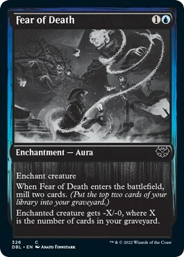 When this Aura enters, mill two cards. (Put the top two cards of your library into your graveyard.)