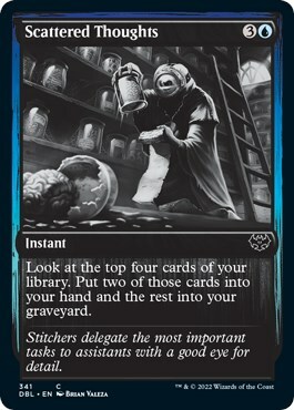 Look at the top four cards of your library. Put two of those cards into your hand and the rest into your graveyard.
