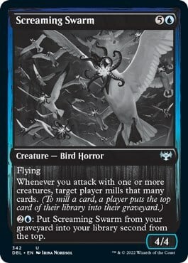Whenever you attack with one or more creatures, target player mills that many cards. (To mill a card, a player puts the top card of their library into their graveyard.)