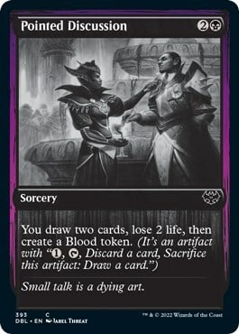 You draw two cards, lose 2 life, then create a Blood token. (It's an artifact with "{1}, {T}, Discard a card, Sacrifice this token: Draw a card.")