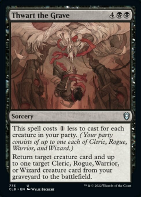 Return target creature card and up to one target Cleric, Rogue, Warrior, or Wizard creature card from your graveyard to the battlefield.