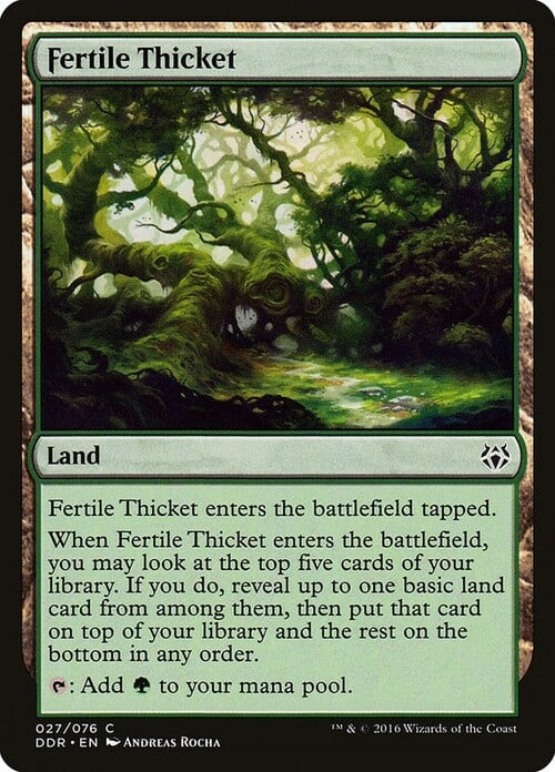 When this land enters, you may look at the top five cards of your library. If you do, reveal up to one basic land card from among them, then put that card on top of your library and the rest on the bottom in any order.