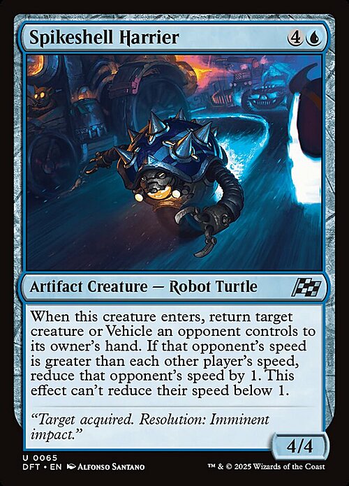 When this creature enters, return target creature or Vehicle an opponent controls to its owner's hand. If that opponent's speed is greater than each other player's speed, reduce that opponent's speed by 1. This effect can't reduce their speed below 1.