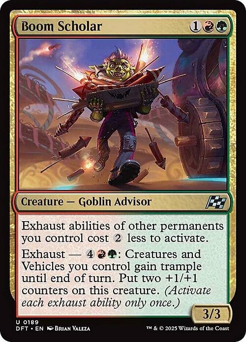 Exhaust — {4}{R}{G}: Creatures and Vehicles you control gain trample until end of turn. Put two +1/+1 counters on this creature. (Activate each exhaust ability only once.)