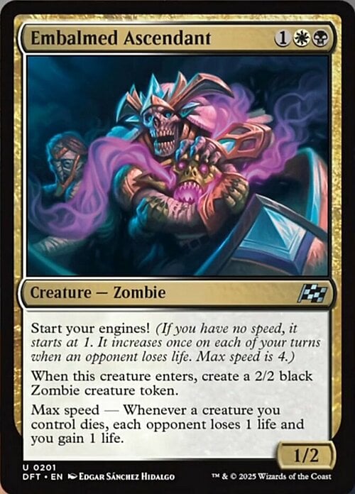 Max speed — Whenever a creature you control dies, each opponent loses 1 life and you gain 1 life.