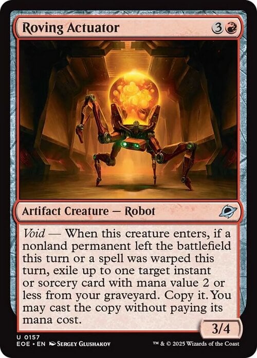 Void — When this creature enters, if a nonland permanent left the battlefield this turn or a spell was warped this turn, exile up to one target instant or sorcery card with mana value 2 or less from your graveyard. Copy it. You may cast the copy without paying its mana cost.